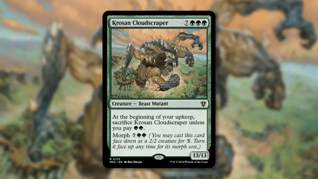 Due to its mana-intensive nature, Krosan Cloudscraper does not see notable play in any formats. A green 13/13 for ten mana, It has no combat abilities and is little more than a large body on the battlefield.