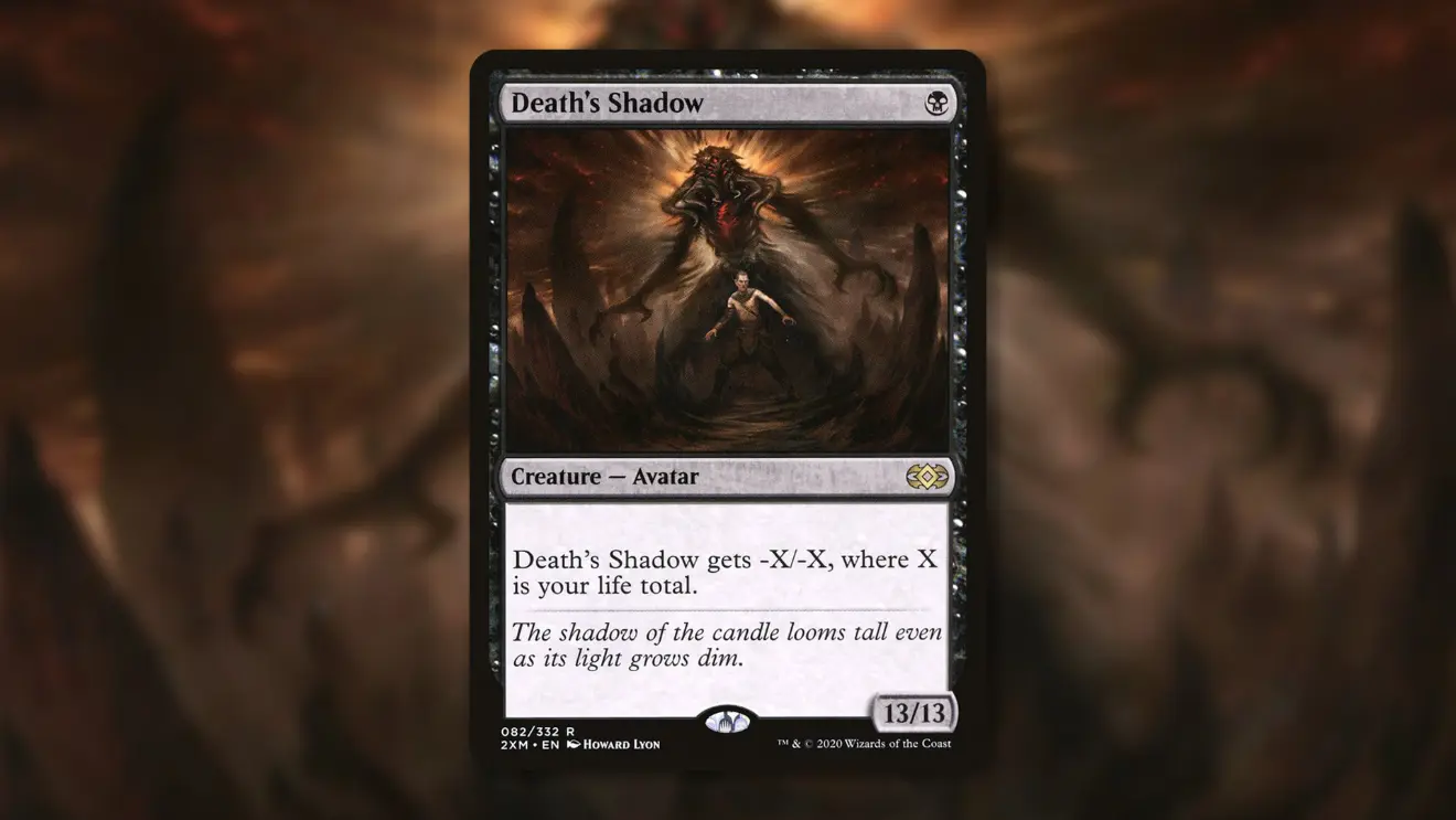 Death’s Shadow is an iconic mono-black creature with a powerful namesake deck in the Modern format. For a single black mana, Death’s Shadow is an enormous 13/13. However, this creature has a drawback: it receives -X/-X, where X is your life total.