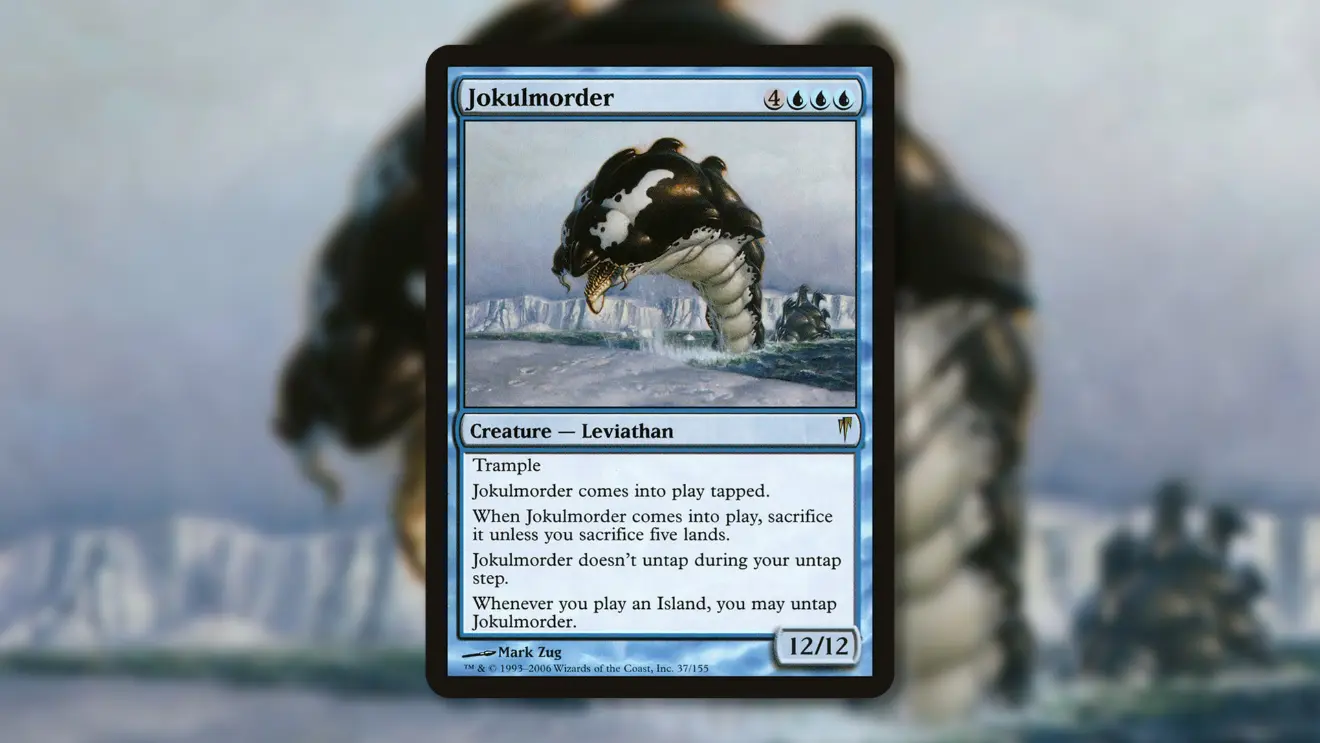 First printed in 2006 with the release of Coldsnap, this Leviathan had players turning heads thanks to its sheer size and strange rules text. While Jokulmorder’s mana value is excellent compared to its size, the actual cost of this creature comes alongside the fact that you must sacrifice five lands once it enters the battlefield.