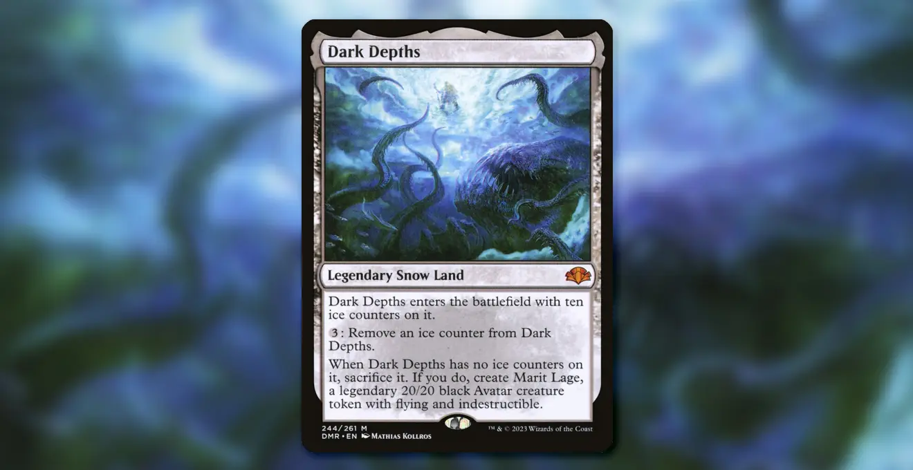 Dark Depths: eventually becomes Marit Lage, a 20/20 flying indestructible threat. Usually with help, because “remove 10 ice counters naturally” is a lifestyle choice.