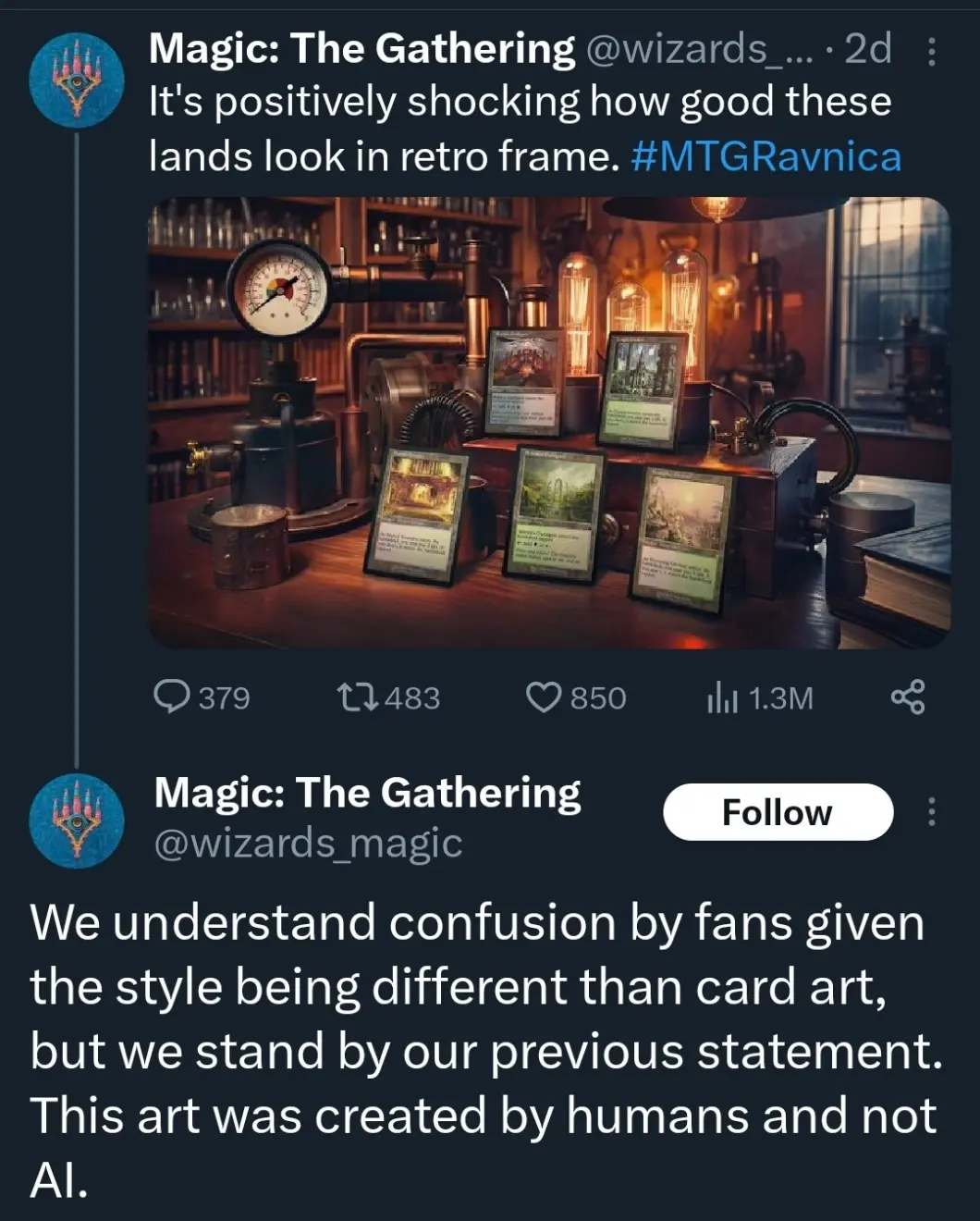 And it’s not hard to see why. Wizards’ own explanation created the “AI slipped in” narrative. Once you say AI can sneak into marketing art through common tools and vendor pipelines, you’ve admitted the system doesn’t reliably catch it.