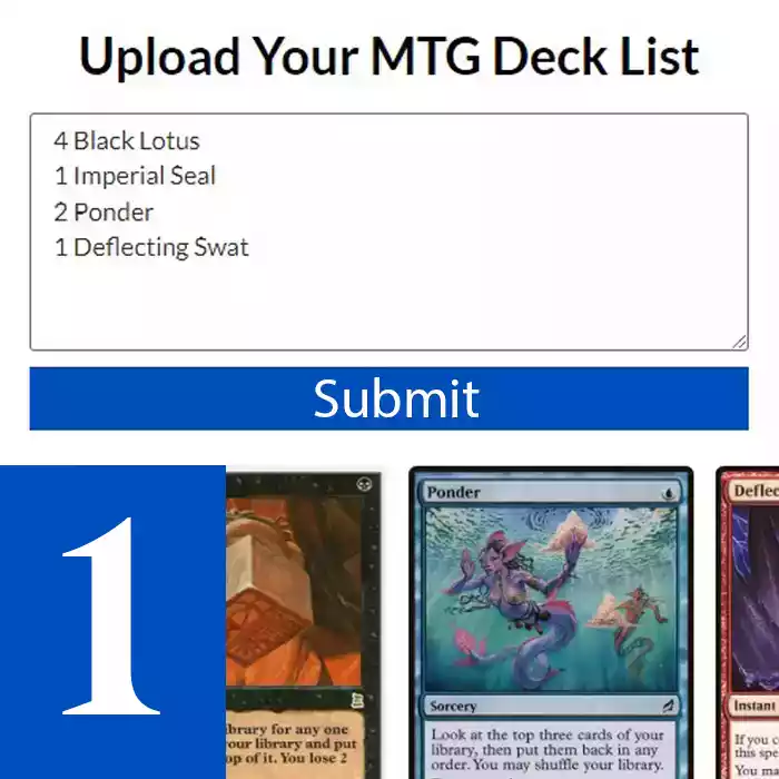 Upload or paste your list, pick the set versions you want, and we’ll print your proxies on premium black-core playing-card stock—standard MTG sizing, smooth finish, and ready to sleeve.